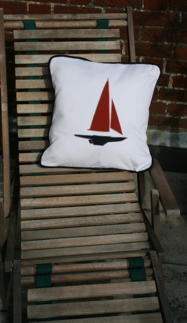 This cushion depicts an outline of the Redwing. It is available in White or Beige with either a feather filling or a non-allergic filling. The cushion is approximately 46cm square.